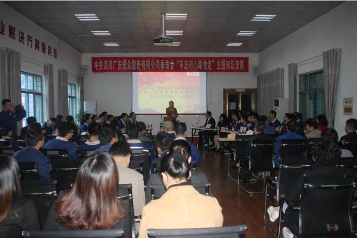 金秋送爽,丹桂飄香,10月24日下午,愛眾股份公司黨委在公司五樓會議室舉行“不忘初心跟黨走”主題知識競賽活動。來自愛眾股份公司總部機關、水務事業部、電力事業部、燃氣事業部及各分子公司的24名優秀參賽選...